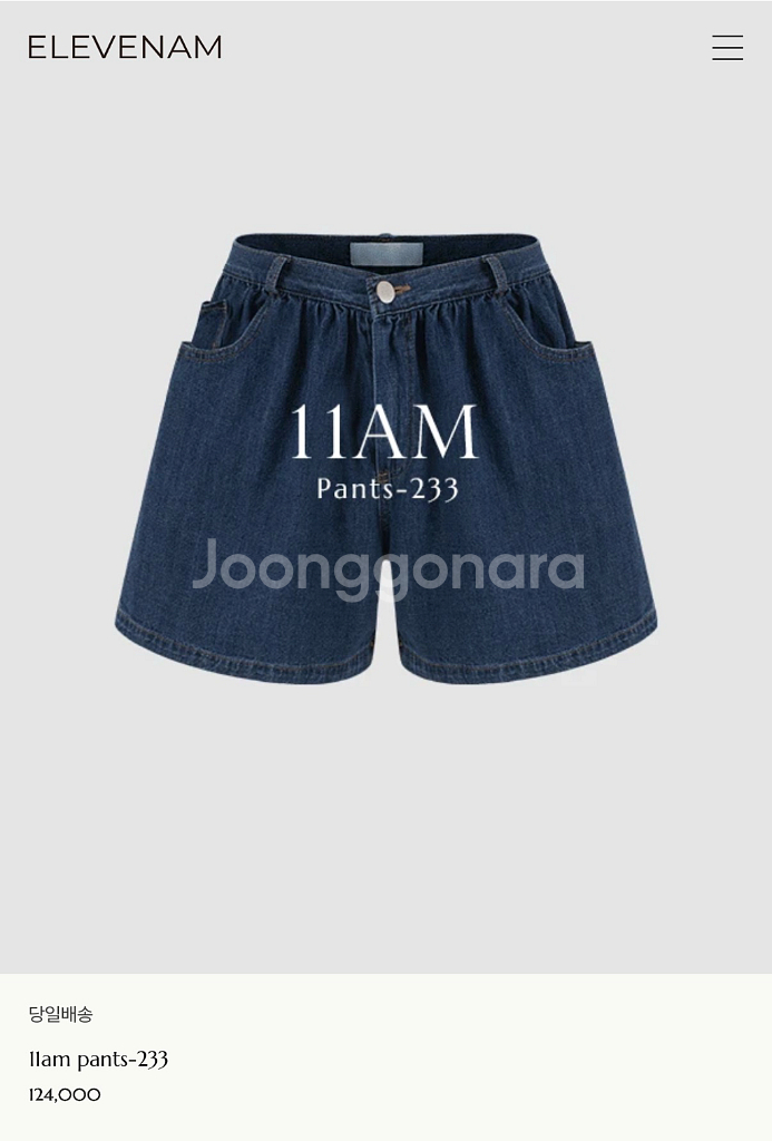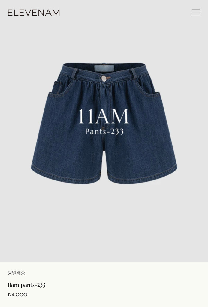 11am 데님 숏팬츠 233 S사이즈 1회착
