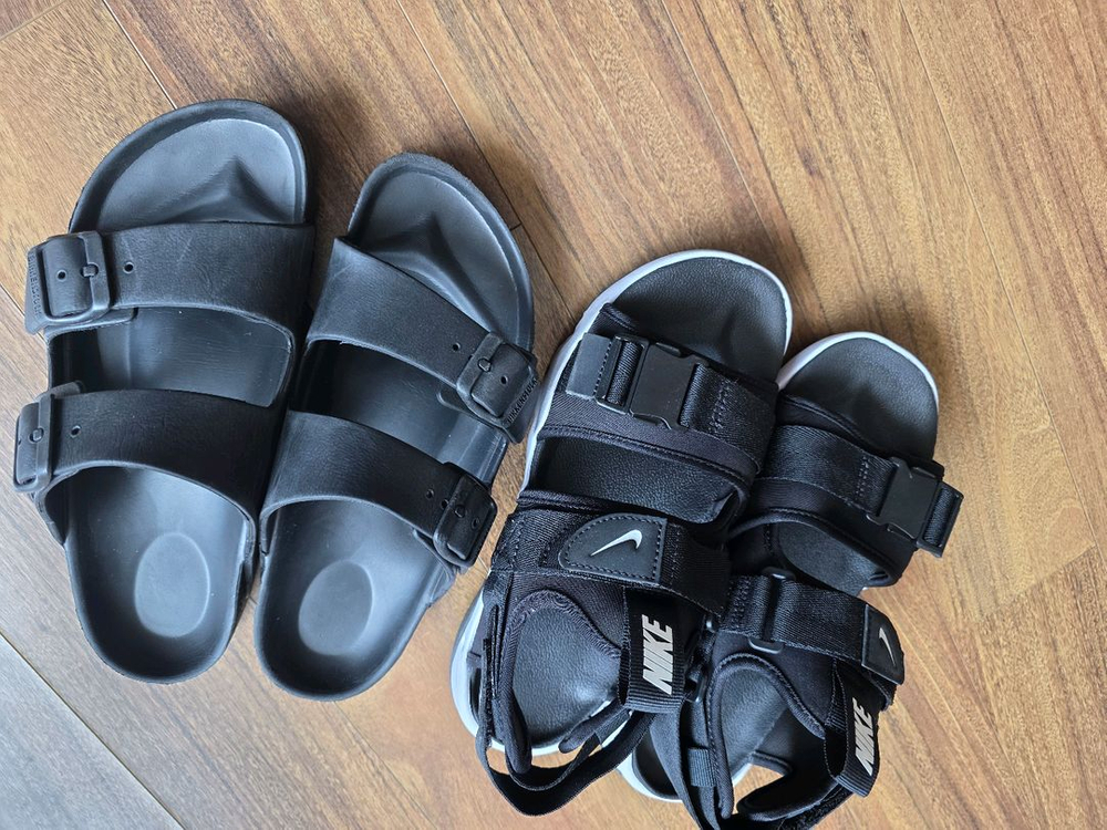 나이키 키즈 샌들 us7. uk4.5 EUR 38 CM24 라고 되어있습니다 사진보시다시피 깨끗합니다 버킨스탁 36 230이라고 되어있습니다 깨끗합니다 2켤레 묶음판매합니다 반품안되니 신중한구매 바랍니다 배송비포함 가격입니다