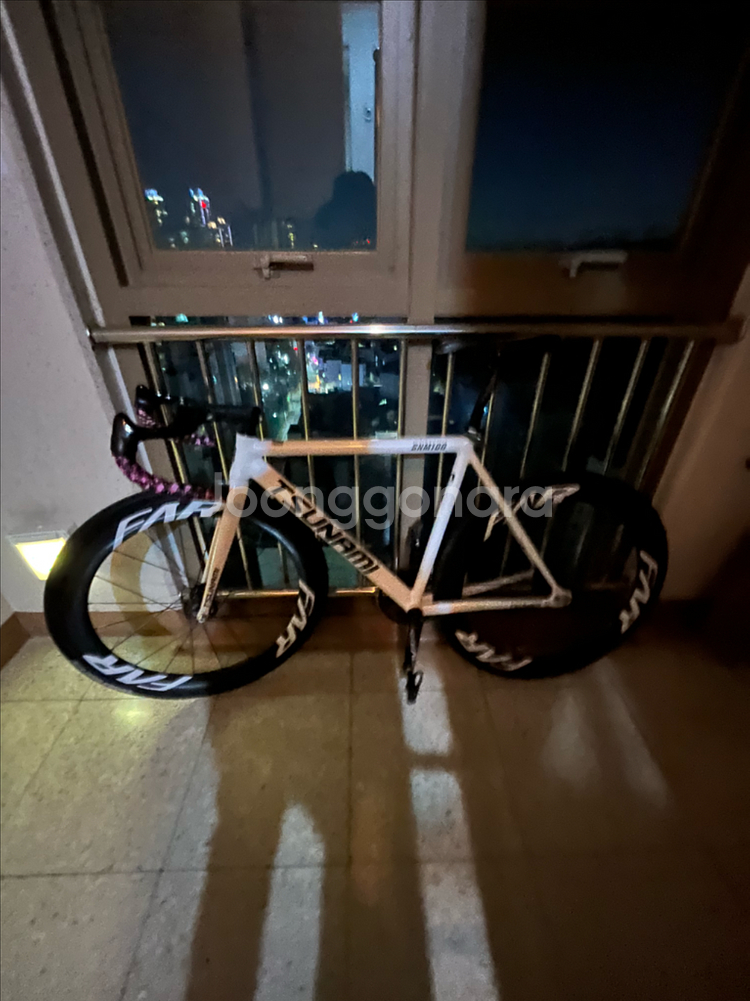 쓰나미 화이트 개 급처입니다 하자랑 그런거 다 생각하고 가격 이렇게 한거에요 네고 왠만하시면 하지 말아주세요 구성은 탐슨 샛벡 싯포 오래오 안장 카본 주먹스템 130미리 알리 번치바 35사이즈 슈퍼카츠 찐 Csc60림(타이어 둘다 좋은거임) 체인 이즈미 스케이스 크랭크 셋