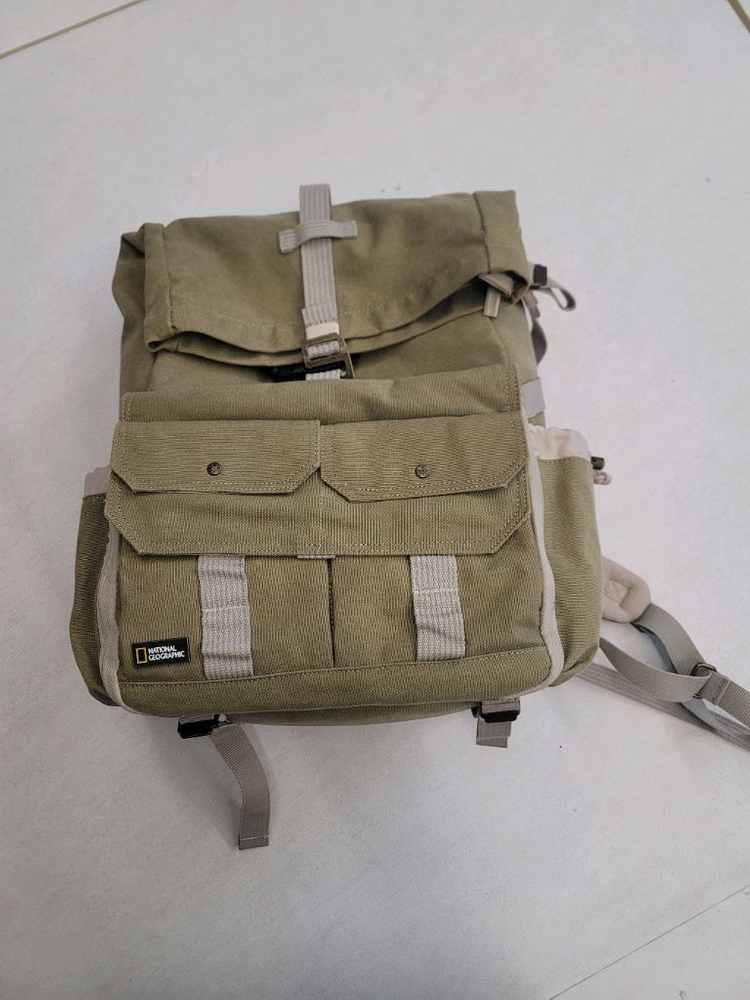 내셔널지오그래픽에서 나온 카메라 백팩이에요 내부 구성품이 다양하게 나뉘어 있어 카메라와 렌즈를 안전하게 보관할 수 있어요 여행이나 출사 갈 때 유용하게 사용할 수 있는 가방이랍니다 사진 촬영을 즐기시는 분들에게 추천드려요 실사용 한두번 하고 보관해뒀는데. 녹이 어떻게 생겼네요 사진 보시면 전면부에 조금이랑 포켓내부 겉감에 좀 묻어있네요 그외 아주 깨끗합니다.