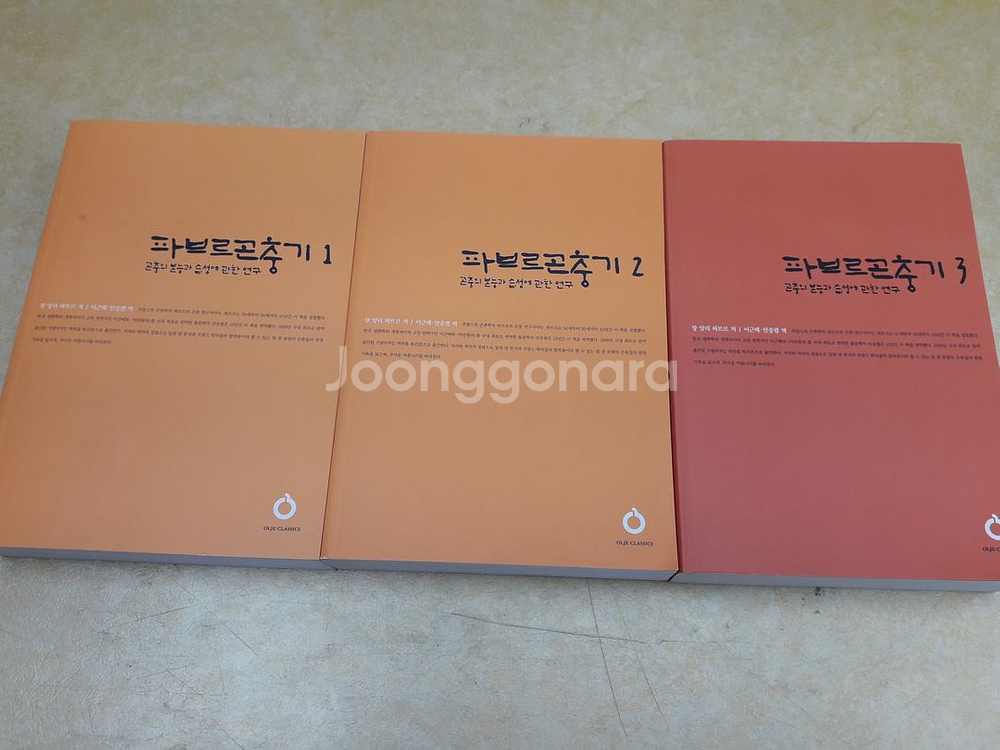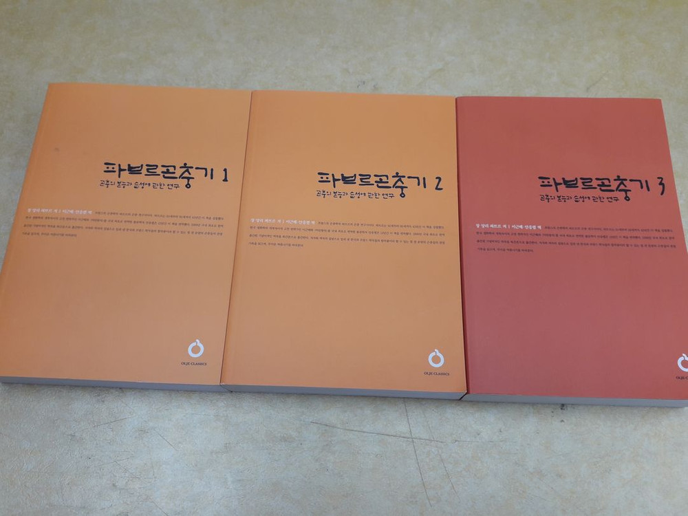 개인정보(거래정보)를 주고받는 행위는 사기에 노출될 수 있으므로 즉시 중고나라로 신고해 주세요OLJE CLASSICS 파브르 곤충기- 곤충 본능과 습성에 관한 연구 총 3권(1~3번)입니다. 표지 사용감 조금, 본문 깨끗해서 마음에 드실거예요~