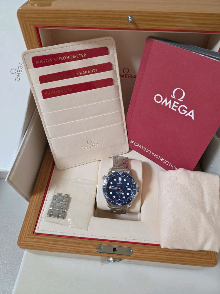 모델번호 : 210.30.42.20.03.001 모델명 : 오메가 씨마스터 다이버 300M 42mm 스틸 블루 다이얼 스템핑일자 : 2019.10 해외 판매가격 : 450 구성품 : 풀셋 시계상태 : 9.0점 수리여부 : 무(노오버홀.노폴리싱) 하고 싶으신 말 : 합리적으로 실착하기에 좋은시계입니다.구매후 실착 많지 않은 보관만한 시계로 생활기스외 상태 좋습니다.직거래 가격이며 .지역은 대구입니다.네고 문의 및 교환 문의 받지않습니다.감사합니다.