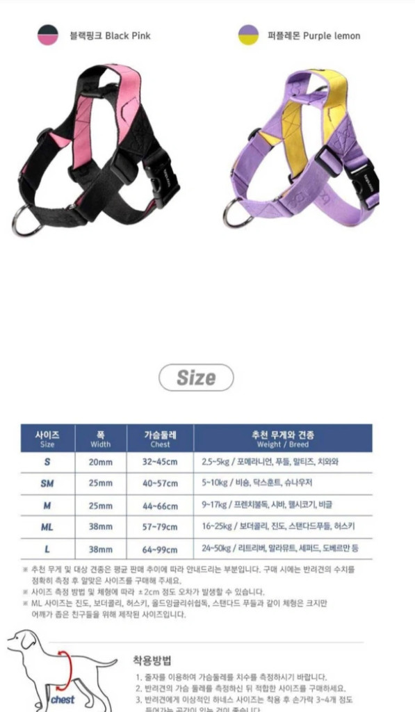 분독 퍼플레몬 강아지 하네스 m