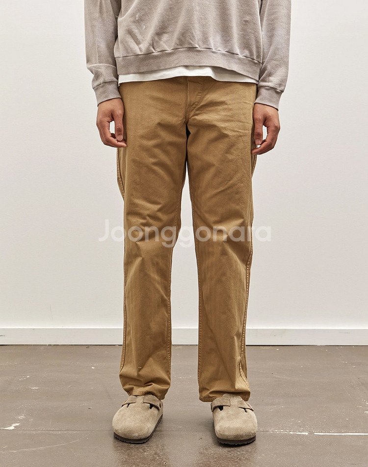 2005년 'ichiro nakutsu'에 의해 일본 고베에서 설립, 빈티지 밀리터리 및 워크웨어 제품에서 영감을 받아 상쾌하고 심플한 컬렉션으로 재해석하는 'Orslow_오어슬로우'사의 HBT 프렌치워크팬츠 카키 모델 입니다. 오어슬로우를 대표하는 스테디 롱셀러 모델중 하나인 프렌치워크 팬츠 카키 모델로... 1960년대 유럽발 워크웨어 팬츠를 레퍼런스 은은한 패턴감의 헤링본트윌 카키바디 베이스 4개의 버튼플라이, 4 +측면 카펜터 포켓, 웨이스트 후면 밴딩 디테일... 국내에서도 많은 편집샵등을 통해 긴시간 검증된 오어슬로우사의 올드 프렌치워크 무드 팬츠 한점으로 상질의 소재감 & 일본제조 퀄리티 메이드, 안정적인 밑위감에 편안한 허리&레그핏으로 시즌감 없이 다양한 장면에서 활용되는 한피스 되겠습니다. 사용감 없는 미품 컨디션, 사진은 밝게나와 색감은 모델컷의 색감에 거의 가까운 편입니다. 표기사이즈 JPN S(1) 허리 밴딩으로 ~30인치 내외 까지 이하 프리하게 착용 되겠습니다. #실측사이즈 허리 : 36~40 밑위 : 31.5 밑단 : 19.5 허벅지 : 32 총장 : 103 택배 거래시 무료배송.