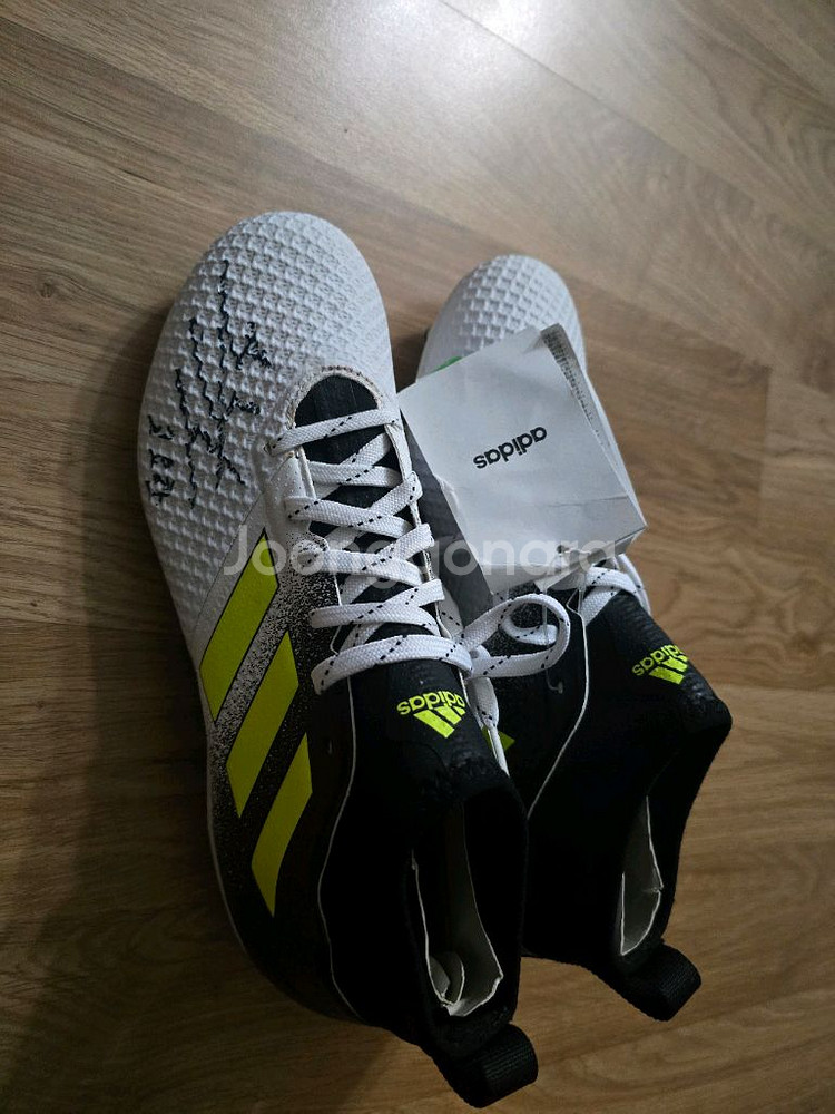 고요한 선수 친필 싸인 들어간 아디다스 축구화입니다. ACE17.3 모델이고, 사이즈는 260mm입니다. 택 달린 미착용 새 제품입니다. 문의 없으시면 바로 안전결제해주시면 됩니다! 19년도에 받은 고요한 친필싸인입니다 축구화 값만 받고 판매합니다 박스없는 새상품 입니다. 한번도 안신었습니다 싸인만 받고 보관만 했어요