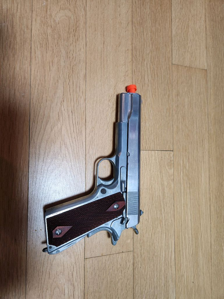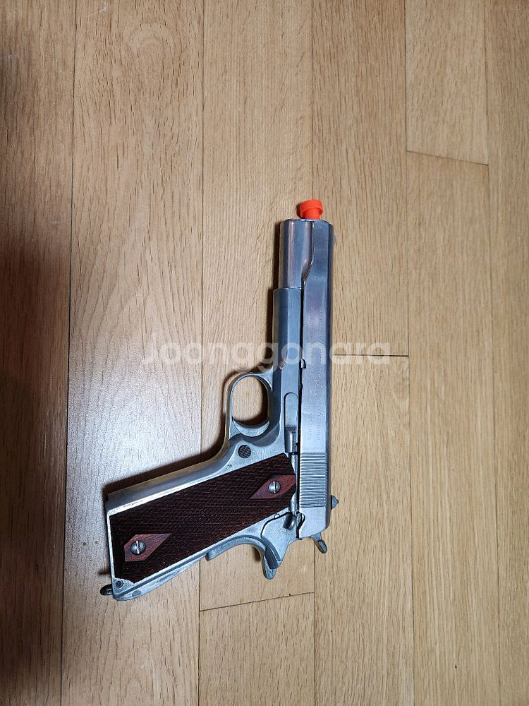벨(마루이 100%호환) 풀 메탈 미해병 각인 콜트1911입니다 탄창은총3개입니다 1개는 A급 1개는 스프닝 내리는 촉?파손(사용상 상관없음) 1개는 부품 수리후 사용 가능 강화 노즐.로켓 피스톤 교환 고급 목재 그립 교환 등등 소소하게 튜닝 되어 있습니다 교환 하고 나온 부품.고급 정밀탄.파워 가스 새거 1통 같이 드립니다 손맛 좋고.트러블 하자 없어요