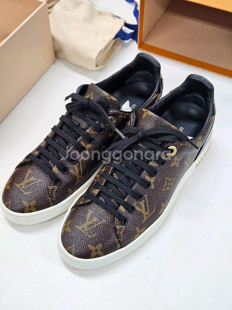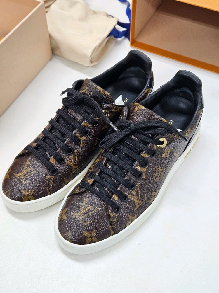 루이비통의 스테디셀러인 프런트로 모노그램 스니커즈입니다. 사이즈: 37 (한국 사이즈 235~240mm 추천) 상태: 실착 횟수가 적어 사진처럼 매우 깨끗한 상태를 유지하고 있습니다. 가죽 까짐이나 밑창 마모 거의 없습니다. 박스와 더스트백, 구매 영수증까지 모두 갖춰져 있어요. 5회정도 실내 착용 스타필드 구매, 영수증 다 드림 구매가 141만원 상태최상