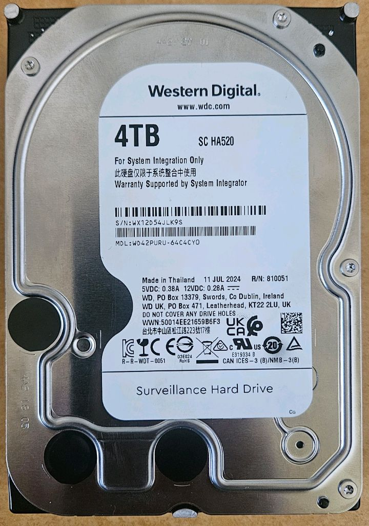4TB SATA 6Gb/s 하드디스크입니다. 시큐리티용으로 제작된 제품이고 상태 양호해요. 서보/서비시 스위치용으로 사용하시면 됩니다. 감시용으로 설계된 WD Purple 4TB 하드 디스크예요 24시간 연중무휴 시스템에 최적화되어 있으며 문서, 영상 작업 등 대용량 데이터 저장이 필요하신 분들께 추천드려요 CCTV 저장용도 사용 중고, CCTV 녹화기 , PC 서브 저장용도, 기타 등 사용가능 정상중고 베드섹터x WD42PURU 14,190시간 - 100,000원 WD40PURZ 54,751시간 - 70,000원 WD40PURZ 55,249시간 - 70,000원 WD40PURZ 59,260시간 - 70,000원 중고특성 상 구매 후 환불불가 합니다.