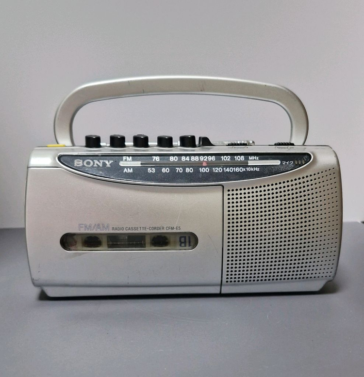 소니 빈티지 라디오 카세트 레코더 CFM-E5 ● 휴대성에 특화된 콤팩트한 디자인으로, 일본 내수용으로 유통되었던 빈티지 기기입니다. ▪︎ 라디오(AM/FM) 및 카세트 재생 정상 작동 확인 ▪︎ 콤팩트한 사이즈에 디자인이 예뻐서 인테리어 소품이나 캠핑용으로도 좋습니다. ▪︎ AA 배터리 4개로 작동하며 사진처럼 깨끗합니다. 대구 상인3동에서 직거래가능 택배비 포함