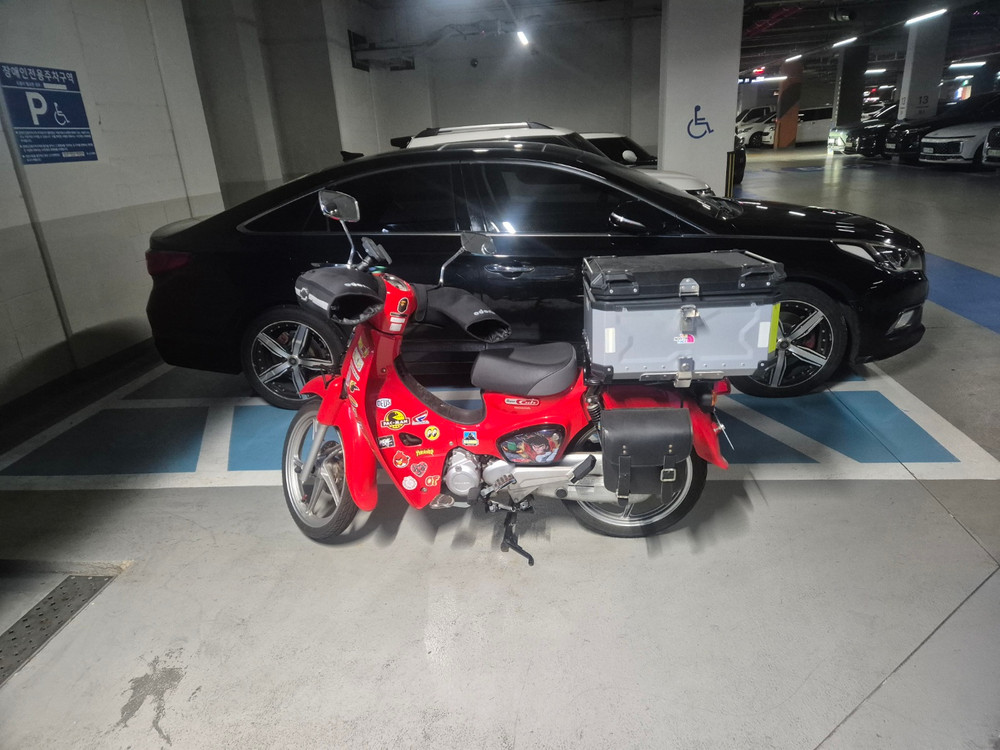 혼다 슈퍼 커브 21년식 올 레드컬러 판매합니다. 현 주행거리 7913km로 소폭 상승할 수 있습니다. 2월8일에 엔진오일 교환완료 탑박스와, 사이드브라켓,사이드백, 핸드폰 무선충전거치대, 크롬 사이드미러, 크롬 기어 변속 및 브레이크 레버, 커브 전용토시, 알루미늄 탑박스80리터 모두 드립니다. 배달 부업용 세컨카로 구매했는데 거의 주차장에 서있게 되어서 판매하려 합니다. 24년 9월 구매당시 250에 위에 말씀드린 부자재 교체 비용 약 50정도 해서 300정도 들었는데 감성적인 부분으로는 매우 이쁘고 좋습니다만 부업으로 쓰기에는 저는 기어 변속이나 이런게 아무래도 기존에 타는 전기스쿠터의 무변속 주행이 익숙해서... 여기 올려도 안팔리면 그냥 탈 생각이고요. 배달 부업중에 가게 앞에서 바람과 함꼐 좌 꿍 한번 있어서 사진에서 처럼 살짝 기스랑 생활기스정도는 미미하게 있습니다. 아직 폐지전이라 확실한 구매자분 오시면 바로 폐지 예정입니다.(회사 앞에 차량등록사업소 있슴)