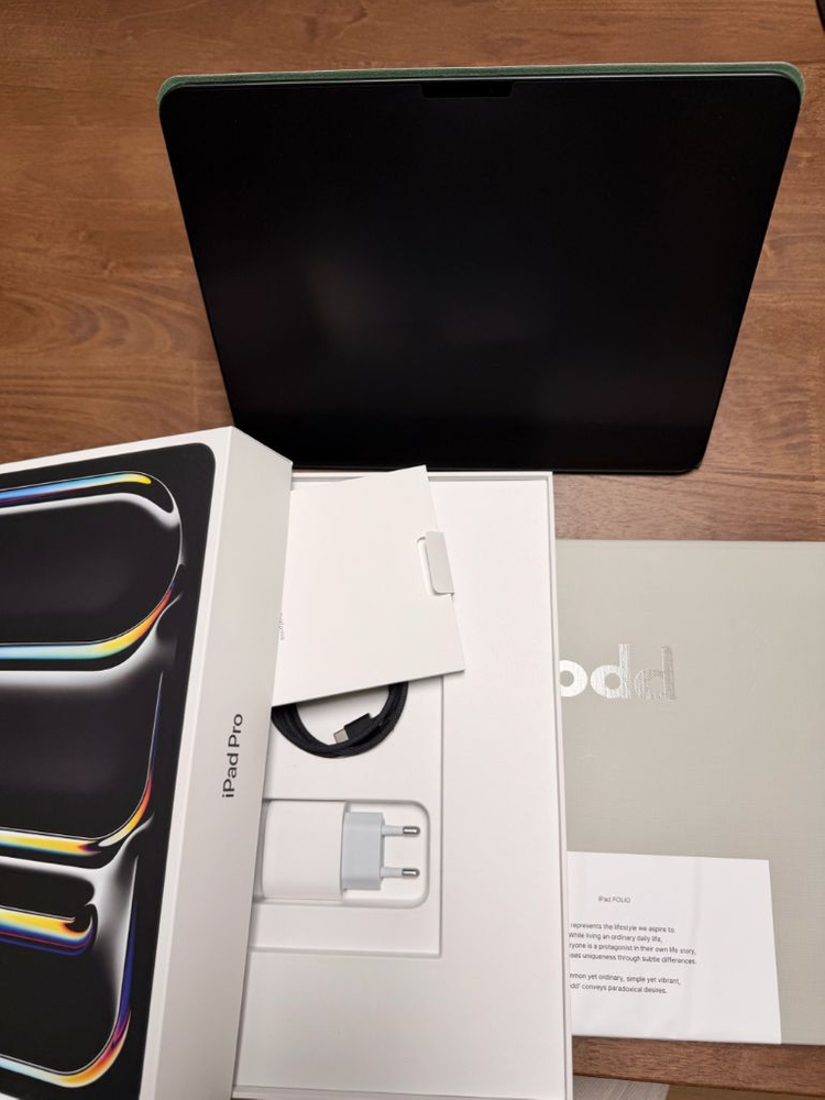 신품 수준 s급 아이패드 프로 13인치 M5 입니다. - 256GB 저장 공간 - 스페이스 블랙 색상 - 배터리 효율 100% 사이클 8 - 26년 3월 12일 개봉 (아직 60일 지나지 않아서 바로 애플케어+ 등록 가능) - 함께 구매한 오드 폴리오 케이스 - 종이질감 필름 부착 / 액정 실기스도 없습니다. (패드 개봉 후 바로 붙임) - 불량화소, 빛번짐 등 테스트 완료 - 유격 등의 이슈없는 양품입니다 어플깔고 첫 세팅 외 거의 사용하지 않았어요. 집에 애플 기기가 많아서 사용하지 않아 판매합니다. 박스, 충전기, 케이블 등 구성품 모두 갖춰져 있어요. 문서 작업이나 영상 시청 등 디스플레이가 좋아서 다용도로 활용하기 좋습니다.