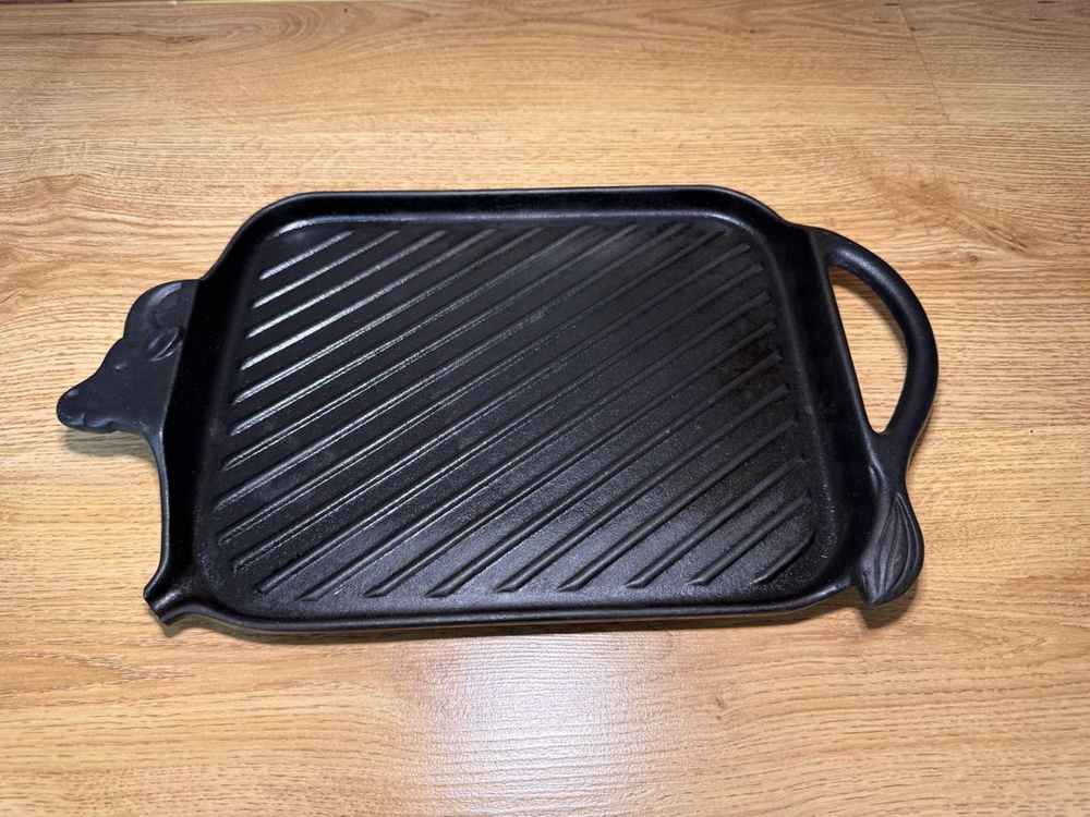 프랑스 차세르(Chasseur)의 무쇠 주물 팬 입니다. 90년된 회사이며 현재 코스트코에서도 판매중인 인기있는 팬입니다. 사이즈: 가로 37 x 세로 22 x 높이 3cm/무게 2.5kg 파손 없고, 상태 양호합니다. 직거래 서울 마포구청역인근, 택배거래시 착불로 보내드려요. 새제품 정보는 아래 링크 참조하세요.