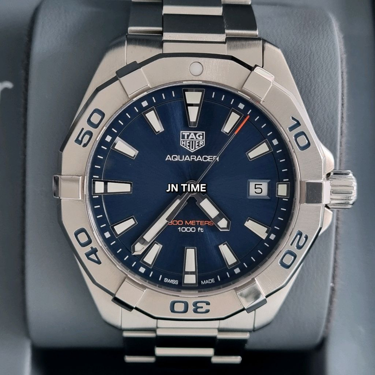 이번에 소개시켜 드릴 시계는 2018년에 출시했던 태그호이어 아쿠아레이서 300 41mm 쿼츠 모델입니다. 이 모델은 구구형 모델(WAY1112)과 비슷한 디자인 때문에 혼돈을 많이 하시는데 디자인이 많이 바뀌었지만 가장 큰 차이는 베젤 숫자가 네이비색 으로 써있는게 구형입니다. (구구형과 중고 시세가 30만원 차이 남) 41mm 스테인리스 스틸 케이스와 300미터까지 방수되는 스크류-다운 케이스백이 장착된 매우 남성적인 블루 다이얼 다이버 워치입니다. 신뢰성, 정확성 및 명성 의 깊이와 범위를 능가하는 전문 타이밍 계측기 브러시드 및 폴리싱 처리된 스틸 케이스에는 6개의 스터드가 장착되어 있어 다이빙 장갑을 끼고도 쉽게 다룰 수 있습니다. 스크류 다운 크라운에는 이중 안전 개스킷이 있어 먼지나 물 침투를 방지 합니다. TAG Heuer의 첫 방수 특허는 1895년 이었습니다. 오늘날의 Aquaracer는 이러한 유산을 반영합니다. 모든 프로페셔널 스포츠 워치의 핵심 기능을 대표하는 최상급 특성을 갖추고 있습니다. 브레이슬릿은 스틸 클래스프와 세이프티 푸시 버튼이 있는 세 줄의 브러싱 처리된 스틸 소재로 되어 있어 실수로 열리는 것을 방지합니다. 일체형 다이버 익스텐션을 통해 잠수복 위에 착용하여 다이빙이나 서핑을 할 수 있습니다. 시계가 많은 분이 소장했던 시계라 실착 많지 않아 상태 아주 좋습니다. 고민하는 순간 팔리고 없으니 빠른 초이스 해주세요. 모델번호 - WBD1112.BA0928 상태 - 새제품 대비 93% 사이즈 - 41mm 무브 - 쿼츠 리테일가 - 266만원 구입시기 - 2020.07 수입사 - 국내백화점 구성품 - 박스,보증서,책자,여분링크 ## 2021년부터 현재까지 중고나라에서 셀러회원으로 활동 중인 JN TIME입니다. (네이버에 상호 검색하면 위치와 번호 나옴) 매장으로 오시면 매입된 제품은 카드결제나 현금영수증 가능합니다. (일부 위탁판매 제품은 제외) 단 택배는 선입금 택배거래만 가능합니다. (안전결제 불가!!) 그리고 판매 금액이 감정이나,수리,상품화 같은 비용이 포함되었어도 개인 간 판매되는 금액 수준이라 에누리는 어렵습니다. 교환이나 에누리 문의 주시면 따로 답장하지 않겠습니다. 제품 구입 관련 문의만 부탁드립니다.