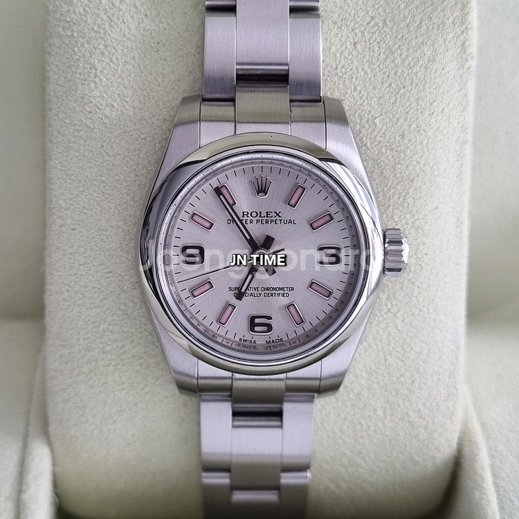 이번에 소개 시켜드릴 시계는 롤렉스 엔트리 라인 오이스터 퍼펙츄얼로 일명 OP로 불리고 있는 구형 모델입니다. 깡통 바가지 버클이 적용된 빈티지 76080 아니고 2007년 ~ 2015년 중순까지 적용된 속이 찬 힌지 레버에 버클 안쪽 무광이 적용된 모델입니다. (2015년 후반부터 버클 안쪽 유광) 롤렉스는 스틸 시계의 케이스에 오이스터스틸을 사용합니다. 904L 스틸 제품군에 속하는 오이스터 스틸은 롤렉스에서 특별히 개발한 합금으로 첨단 기술, 항공, 화학 등 탁월한 내부식성이 요구되는 분야에 주로 사용되는 특수 소재입니다. 뛰어난 저항력을 자랑하는 오이스터 스틸은 극한의 환경에서도 특유의 아름다움을 유지할 뿐 아니라, 연마를 거치면 더없이 멋진 광택을 냅니다. 오이스터 브레슬릿은 형태와 기능, 미학과 기술의 완벽한 연금술을 선보입니다. 1930년대 말에 처음 개발된 이 메탈 브레슬릿은 넓은 링크 3열로 구성 되었으며 탁월한 내구성과 편안함을 자랑합니다. 오이스터 컬렉션에서 가장 보편적으로 사용되는 브레슬릿입니다. 오이스터 퍼페츄얼 모델의 오이스터 브레슬릿에는 오이스터 클라스프가 장착되어 있습니다. 신형 276200으로 바뀌면서 26mm가 단종되고 28mm로 나왔는데 리테일가가 898만원 입니다. 신형과 외형이 사이즈 외에 바뀐게 없는데 가격을 생각해 보면 구형도 나쁘지 않다고 생각합니다. 구입은 2015년 국내백화점에서 구입 했고 시계가 많은 분이 소장했던 시계라 실착 많지 않아 상태 깨끗하고 2023년 오버홀도 해서 오차 허용범위 이내로 아주 좋습니다. 고민하는 순간 팔리고 없으니 빠른 초이스 해주세요. 모델번호 - 176200 구입시기 - 2015년 상태 - 새제품 대비 94% 구입한곳 - 국내백화점 구성품 - 보증서,여분링크,융,박스 ## 2021년부터 현재까지 중고나라에서 셀러회원으로 활동 중인 JN TIME입니다. (네이버에 상호 검색하면 위치와 번호 나옴) 매장으로 오시면 매입된 제품은 카드결제나 현금영수증 가능합니다. (일부 위탁판매 제품은 제외) 단 택배는 선입금 택배거래만 가능합니다. (안전결제 불가!!) 그리고 판매 금액이 감정이나,수리,상품화 같은 비용이 포함되었어도 개인 간 판매되는 금액 수준이라 에누리는 어렵습니다. 교환이나 에누리 문의 주시면 따로 답장하지 않겠습니다. 제품 구입 관련 문의만 부탁드립니다.