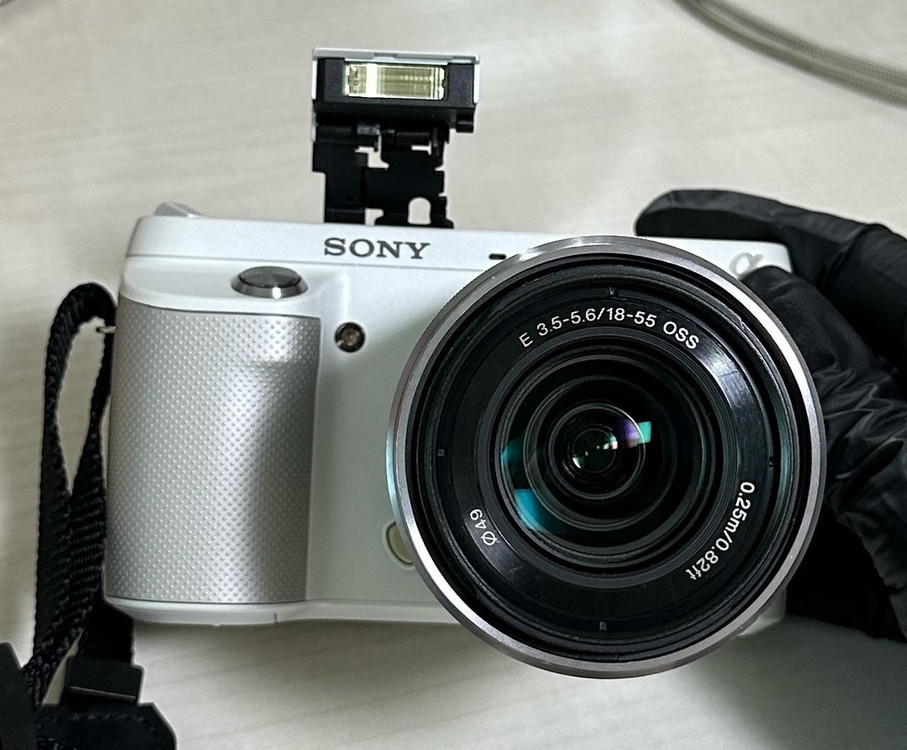 소니 NEX-F3 미러리스 카메라 화이트 색상이에요 180도 틸트 LCD와 함께 18-55mm 렌즈가 포함되어 있어요 사진 촬영을 처음 시작하시는 분들께 추천드리는 제품이에요 모든 기능 정상작동 합니다 외관 액정에 기스 있는 거 말고는 상태 아주 좋습니다 한글 지원합니다 구성품 충전기 배터리 SD카드32기가 스트랩 렌즈앞캡 구성입니다