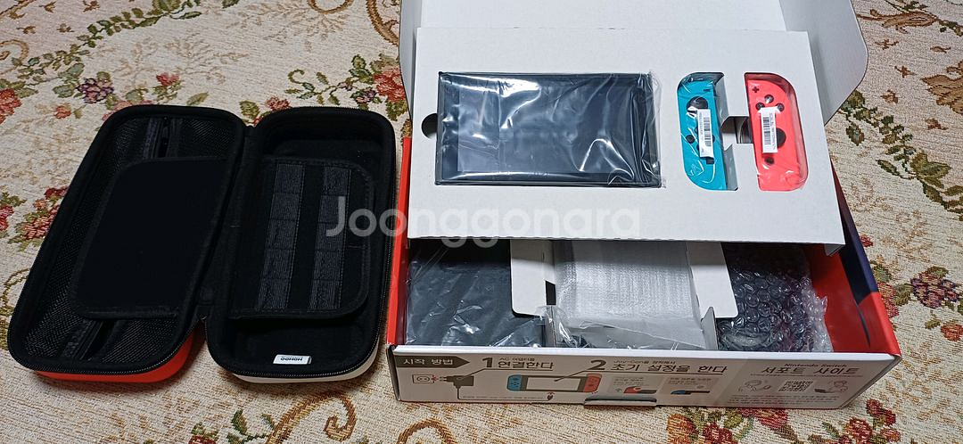 닌텐도 스위치 구형 풀박입니다. 본체도 조이콘도 모두 문제없이 정상작동합니다. 1년 가까이 사용했기에 판매자가 눈치채지 못한 잔기스가 나 있을 수도 있으나 전체적으로 깨끗합니다. 박스 구성은 분실없이 전체 다 있으며 256GB 상당의 sd카드와 전용 대형 케이스까지 끼워 보내드립니다. 교환 환불 불가하며 네고 가능합니다. 편히 연락주세요