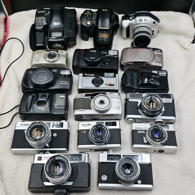 **설명글 끝까지 필독해주세요. 빈티지 필름 카메라 17점을 일괄. 전체적으로 외관 상태는 양호하나, 현재 정상 작동되지 않거나 점검 및 수리가 필요한 상태입니다.(부분 작동품 포함) 실사용보다는 수리 숙련자분의 부품용, 전문 수집가분의 소장용, 혹은 카페나 스튜디오의 감성적인 인테리어 소품 및 촬영 장식용으로 추천드립니다. ■ 카메라 목록 (총 17점) Canon Canonet QL17 (명기 캐노넷) Konica C35 (컴팩트 RF) Yashica Electro 35 Canon Autoboy 3 Ricoh Mirai (독특한 미래형 디자인) Petri 35 Deluxe Fujica 35-SE Fujica Flash AW Nikon Pronea S Olympus IS 시리즈 Yashica Zoomate 140 Pentax Zoom 70-S Minolta Riva Zoom 70 Pentax Espio 시리즈 Chinon Auto GL Ricoh Myport 310SF Minolta Hi-Matic 시리즈 ■ 상세 안내 상태: 전 기종 '정상 작동 불가' 전제하에 판매합니다. 용도: 수리용, 부품 추출용, 인테리어 소품, 전시용. * 택배 거래 시 최대한 안전하게 포장. 귀한 모델들이 섞여 있어 일괄로 가져가시면 충분히 가치가 있음. 찜했던 상품이 판매완료 되었더라도 끌어올리기 횟수 제한으로 판매완료 처리후 재등록 될수도 있습니다. 상품 찜하기와 더불어 단골가게 등록하시면 언제든 현재 판매중인 전체를 볼수 있습니다. ♤더 많은 희귀 골프 클럽 보기 https://web.joongna.com/store/4082210
