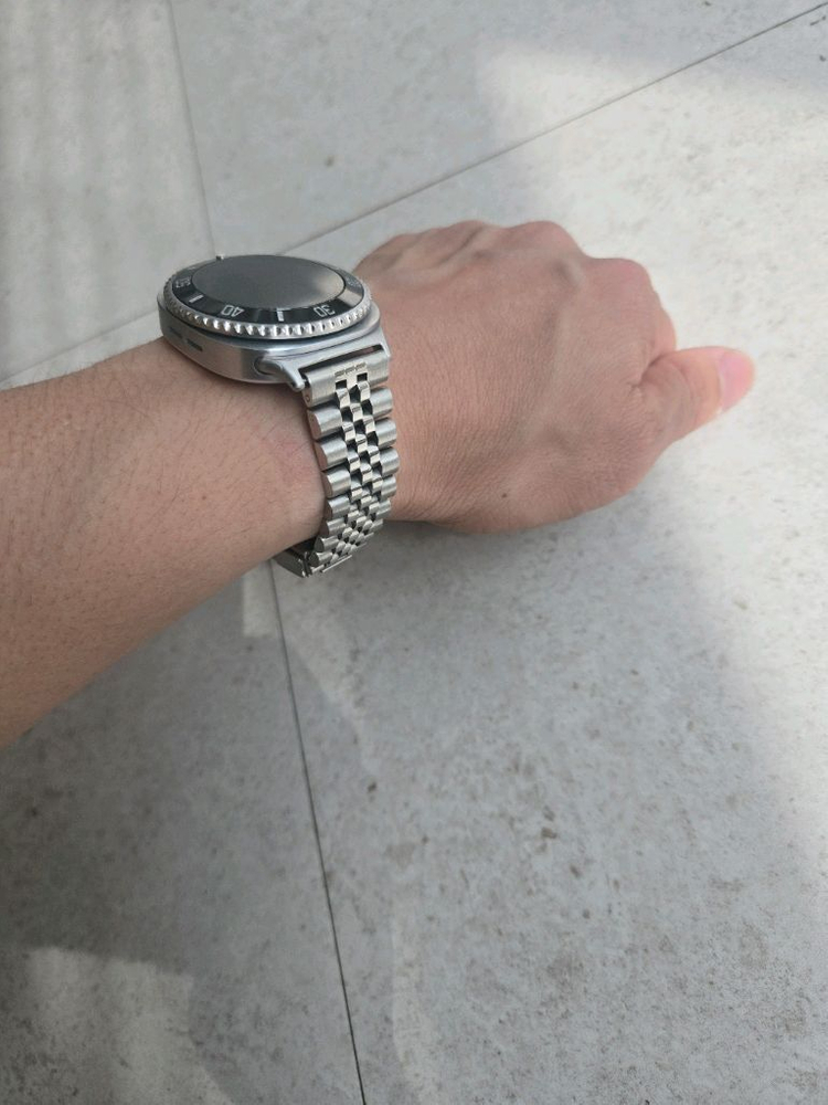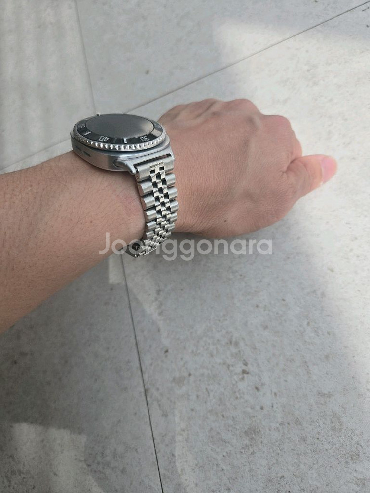 갤럭시워치8 스트랩입니다 시중에파는 쥬빌레스트랩과 간격크기 러그사이즈모두 틀립니다 이미테이션시계공장스트랩만 빼서 가공해서 만들었습니다 스 15-17손목까지는 여유분스트랩안끼워도 착용가능할것같습니다 크롬하츠스타일의 스트랩도 중고입니다 손목16.-17 까지가 보기좋을것같습니다 크롬하츠스타일의가격은10