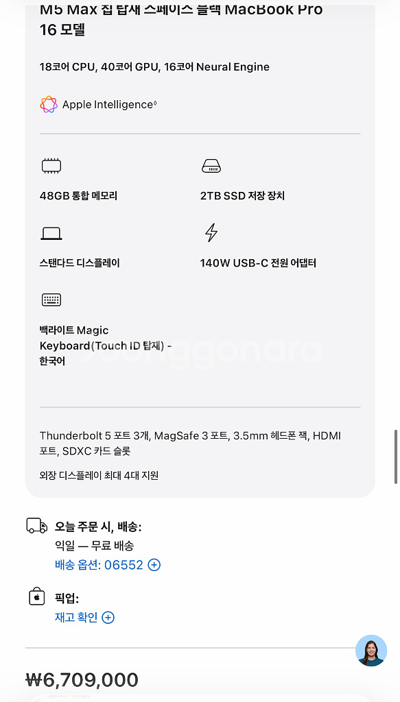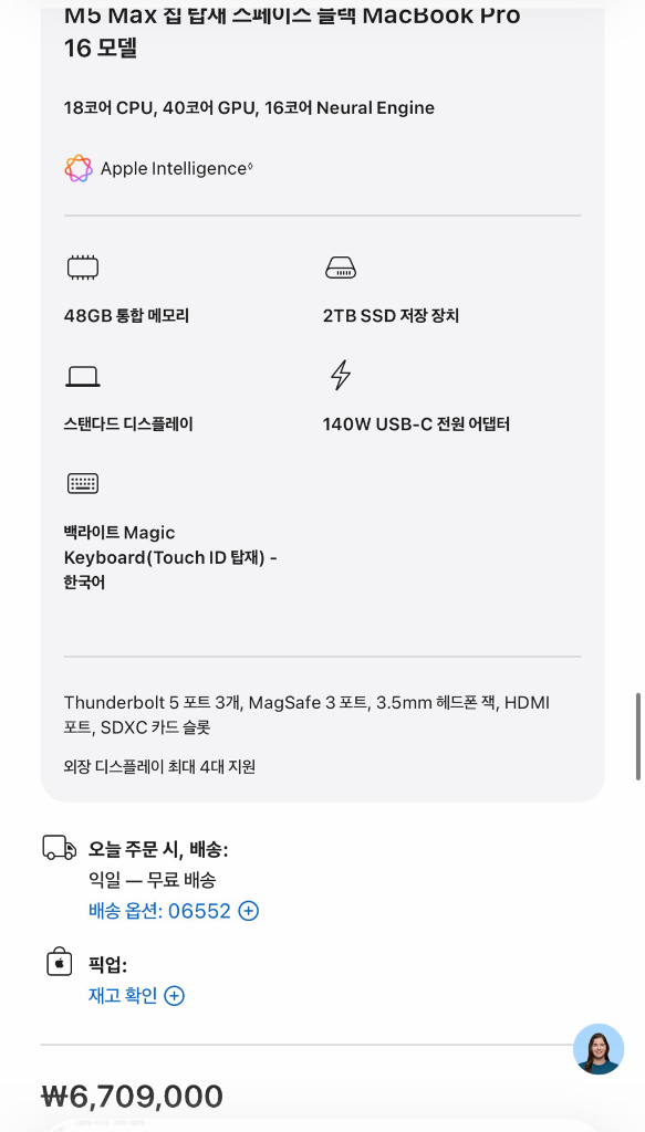 m5max 16인치 맥북프로 18코어40코어 2tb 미개봉 새상품