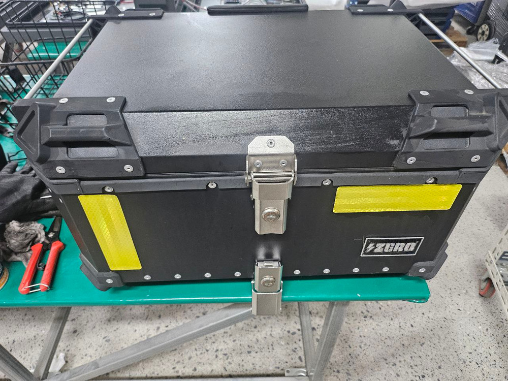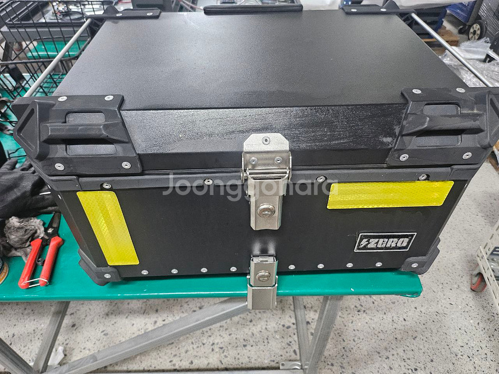 오토바이에 장착하는 65L 알루미늄 탑박스입니다. 검정색 무광으로 튼튼하게 잘 만들어졌습니다. 사진 보시고 궁금한 점 편하게 연락주세요. 가로58. 세로 40 높이 33 내피 있고, 키는 1개입니다 등받이 설치되어있음 직거래는 하남 판매가격 9만원 --> 8만원(애눌 불가)