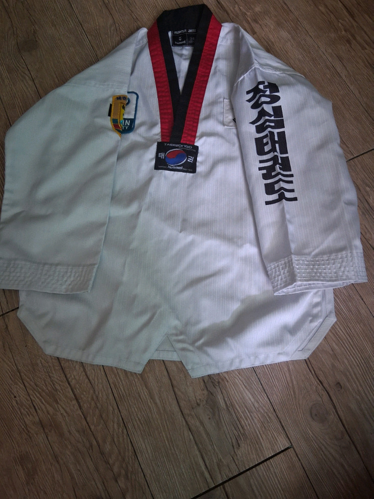 태권도 도복 3호 사이즈입니다. 화이트 바탕에 레드와 블랙 스트라이프가 있고, 한자 인쇄가 되어있어요. 사용감은 있지만 전체적으로 깔끔한 상태입니다. 우체국,CJ대한통운입니다 CJ는 택배비 별도부담 제 상점에서 2개이상 구매시 할인합니다 2개 : 30% 3개 : 50%