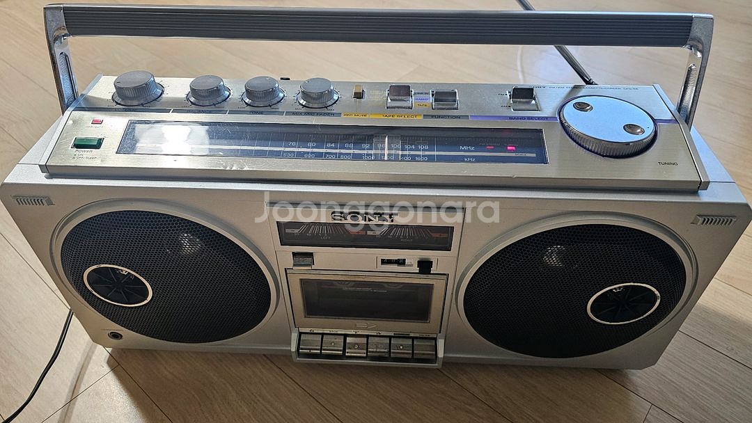1981년도 버블 경제 시대 때 생산된 Sony CFS-66 카세트 라디오 대형 붐박스입니다. 최근 상당한 시간을 투입 정비하여 작동 잘 됩니다. 라디오도 스트레오 수신 잘되고 모든 기능이 정상적으로 잘 작동됩니다. 다만 오래된 빈티지 장비라 조율 수리가 추가적으로 발생될 수 있음을 이해하시는 분만 구입하여 주세요 후면 라인 AUX in, OUT 단자 있어 편리합니다. 소리 좋습니다. 파손면첵 동의하에 택배로 잘 포장해서 발송드리겠습니다. 스피커 시스템: 4스피커 시스템을 탑재하고 있으며, 16cm 우퍼 2개와 4cm 트위터 2개로 구성되어 깊고 풍부한 사운드를 제공합니다. 출력: 총 7W (채널당 3.5W + 3.5W)의 전력을 출력합니다. 카세트 기능: 노멀, 크롬 메탈 테이프를 모두 지원하는 3단 테이프 선택 스위치가 있습니다. 자동 음악 센서(AMS)와 곡을 찾을 때 소리를 죽이는 Mute 기능을 갖추고 있습니다. 고급 데크에서 볼 수 있는 부드러운 열림 방식(2-Motion Soft Eject)이 적용되었습니다. 전원: 100V AC 전원(일본 내수용 모델 기준), DC 12V, 또는 C형 배터리 8개를 사용하여 구동할 수 있습니다. 외형: 주로 실버 색상으로 제작되었으며, 당시 기준으로는 비교적 큰 크기인 폭 520mm, 높이 252mm, 깊이 146mm의 크기를 가졌습니다. 무게는 약 6.5kg입니다.