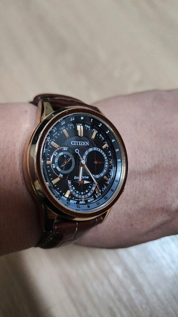 사진 속 시계는 시티즌 에코 드라이브 칼렌드리(Citizen Eco-Drive Calendrier)시티즌 에코 드라이브 BU2023-04E 시계입니다. 제품 정보modello8729 브랜드: 시티즌 (Citizen) 제품 라인: 에코 드라이브 (Eco-Drive) 칼렌드리 (Calendrier) 에코 드라이브: 빛 에너지(자연광 및 인공광)로 구동되며 배터리 교체가 필요 없습니다.시티즌중 고급진 다이얼이특징 용두두개중 밑부분용두는 안쪽다이얼 조절하는 용도로다이얼이밖에 노출되지않습니다. 기능: 12/24시간 표시, 24개 시간대 월드 타임 기능, 요일 및 날짜 표시 기능이 있습니다. 소재: 로즈 골드 톤 스테인리스 스틸 케이스, 미네랄 크리스탈 글라스. 방수: 100m 생활 방수 (10기압 방수). 케이스 크기: 44mm. ●●●가격은현재 중고가30이상하는걸로 서클서투치 동일상품 가격대비 싸게올림 사용설명서포함