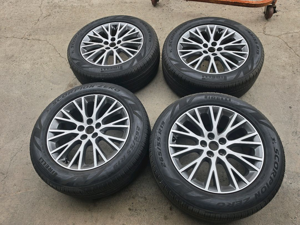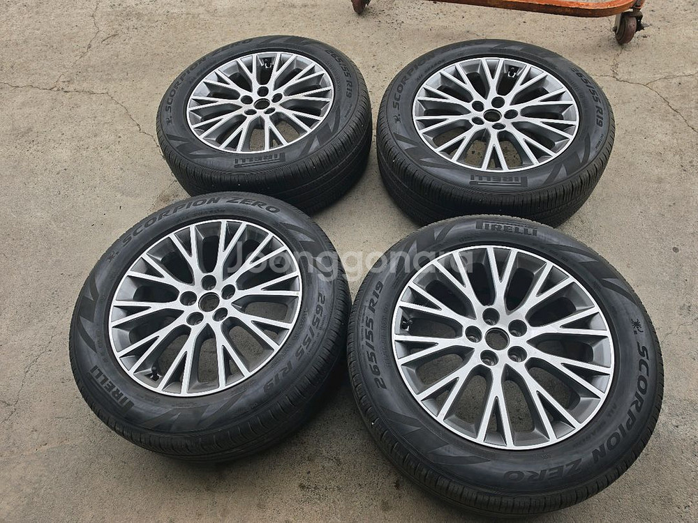제네시스 GV80 순정 19인치 휠 타이어 입니다 타이어 스콜피온 265 55 19 사이즈 휠은 내부외부 모두 큰 스크래치 없고 파손 굴절 없이 깨끗합니다. 사진 참고~~ 최대한 자세히 찍으려 했습니다. 타이어는 휠보호를 위한 서비스 개념 정도 2개는 좀 남았고 2개는 거의 다 닳아는게 사진으로 보이시죠~~ 현장에서 보시고 결정하면 50에도 가능~~