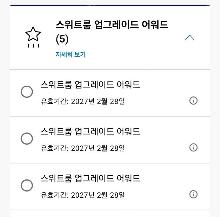 개인정보(거래정보)를 주고받는 행위는 사기에 노출될 수 있으므로 즉시 중고나라로 신고해 주세요하얏트 스위트룸 업그레이드 어워드 판매합니다 전세계 하얏트 호텔 공식 홈페이지 예약건에 적용 가능합니다. 유효기간 27년2월까지 12만원 28년2월까지 13만원 1장당 7연박까지 적용 가능합니다 채팅 주세요