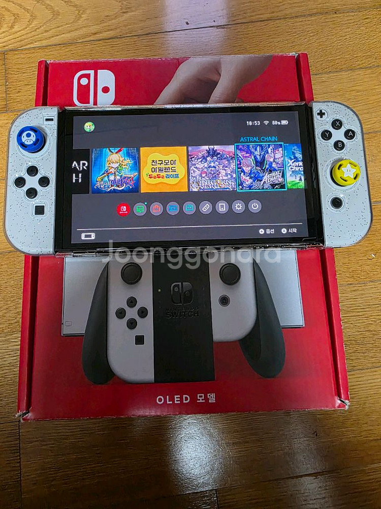 [S급] 닌텐도 스위치 OLED 화이트 + 삼성 512GB SD 풀박스 판매합니다 사진 보시다시피 정말 애지중지하며 깨끗하게 사용한 닌텐도 스위치 OLED 모델입니다. 기기 상태 아주 좋고, 무엇보다 용량 걱정 없이 게임 즐기시라고 삼성 정품 마이크로 sd카드 512GB (12만원 상당 / 무상보증 10년)까지 포함해서 드려요! 모델: 닌텐도 스위치 OLED 화이트 (정품 박스 포함 풀패키지) 상태: 구매 후 바로 투명 케이스 및 조이콘 캡 씌워서 사용해 기스나 찍힘 거의 없습니다. (메인보드 클리닝과 써멀 재도포를 통해 새제품 컨디션입니다) 추가 구성: 삼성 정품 마이크로 SD카드 512GB, 액정보호필름 새로 부착 조이콘 냥발/버섯 캡 포함 (조작감 훨씬 좋아요) 본체 투명 보호 케이스 장착 중이고 바로 게임 즐기실 수 있습니다. ☆게임 타이틀음 채팅주세요☆