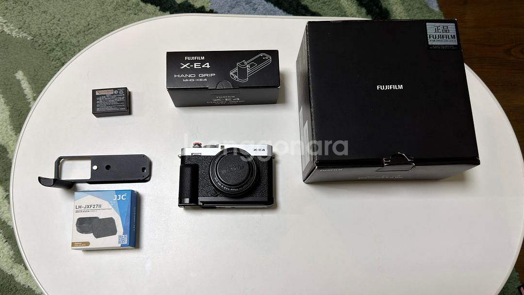 후지필름 X-E4 & 27mm F2.8 판매합니다. 구성풍 - X-E4 본품, 27mm F2.8 렌즈 본품, 정품 베터리 2매, 정품 엄지그립 (TR-XE4), 정품 핸드그립 (MHG-XE4), JJC 핸드그립, 27mm F2.8 정품 후드, 27mm F2.8 호환 JJC 후드, b+w 필터, 각종 박스 (X-E4 핫슈 커버는 없습니다.) 기기 변경을 하면서 판매하게 되었습니다. 1년 반 정도 사용하였습니다. 컷수는 5,800컷 입니다. 사용에 따른 사용감 및 기스가 있습니다. 자세한 내용은 위 사진을 참고해주시면 감사하겠습니다. 직거래 장소는 7호선 어린이대공원역 입니다. 택배거래는 노리턴 파손면책 조건하에 가능합니다. '010-4116-육이구오'로 문주 주시면 감사하겠습니다. 네이버 채팅 및 전화는 잘 받지 않습니다. 네고 요청은 정중히 거절하겠습니다.