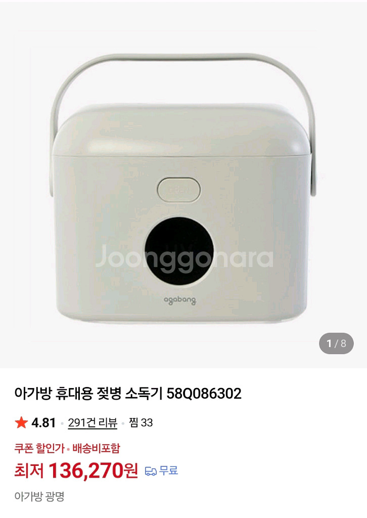 개인정보(거래정보)를 주고받는 행위는 사기에 노출될 수 있으므로 즉시 중고나라로 신고해 주세요아가방 휴대용 젖병 소독기입니다 UV 살균으로 젖병을 위생적으로 관리할 수 있습니다 미개봉새상품 박스채있습니다 감일동 직거래. 택배거래 그외지역 문의주세요