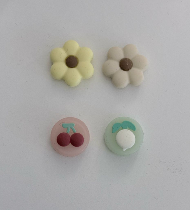 닌텐도 스위치2 조이콘 스틱커버입니다. 프로콘1에도 사용 가능합니다. 새 상품 구입 후 안쓰는 피스들은 일괄로 판매합니다. - 긱쉐어 스틱커버 모동숲 2종 (체리/무) - 꽃모양 스틱커버 2종 (노랑/베이지) 미사용 스틱커버 총 4종 일괄 사진 속 포장대로 갑니다. 합배송 가능