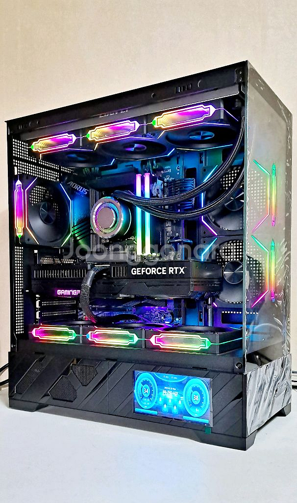 무게와 파손위험 때문에 제가 있는 곳으로 오셔서 가져가셔야 합니다 잠실 직거래만 합니다 25년에 540만원에 구매한 고사양 하이엔드 컴퓨터 판매합니다 판매 글 끝까지 읽고 톡 주세요 네고 문의 가격제안 답변 안하고 거절합니다 직거래만 가능하니 택배거래 문의는 사양합니다 인텔 i9 14900K 정품 GIGABYTE Z790 AORUS ELITE 제이씨현 ESSENCORE KLEVV DDR5-5600 파인인포 (16GB) X 2개 총 32G ARGB 메모리 방열판 2개 SSD 마이크론 Crucial T500 M.2 NVMe 1TB 이엠텍 PALIT RTX 5080 GAMINGPRO D7 16GB Prism 4RS ARGB 케이스팬 120mm X 9개 리안리 GALAHAD AIO 360 (BLACK) EXCEL FOCUS 1000W 80PLUS골드 풀모듈러 ATX3.1 WJCOOLMAN LCD screen 케이스 부품들 무상 AS 28년까지 남아 있고 윈도우 11 PRO 정품 설치되어있습니다 윈도우 새로 설치하고 벤치마크 테스트와 온도체크까지 완료하여 정상 작동 확인 후 판매합니다 중고거래 특성 상 작동 이상없고 무상 AS 남아 있기에 환불 불가하니 작동 확인 후 구매하셔도 됩니다 고사양이기때문에 스스로 AS접수 정도는 하실수 있는 분만 구매하세요