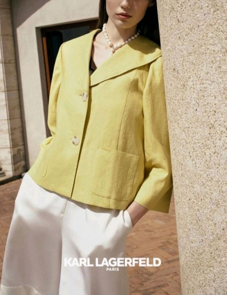 🎯 택배는 GS택배만 가능합니다. (일반택배는 4500원, 반값택배는 2200원 주세요.) 칼라거펠트(Karl Lagerfeld)의 프렌치린넨100% 세일러카라 재킷입니다. 사선으로 제작된 세일러카라와 실사용 가능한 아웃포켓이 경쾌해 보입니다. 뒤쪽 양옆은 버튼 장식으로 실루엣 조절이 가능합니다. 옐로 색상으로 77사이즈입니다.