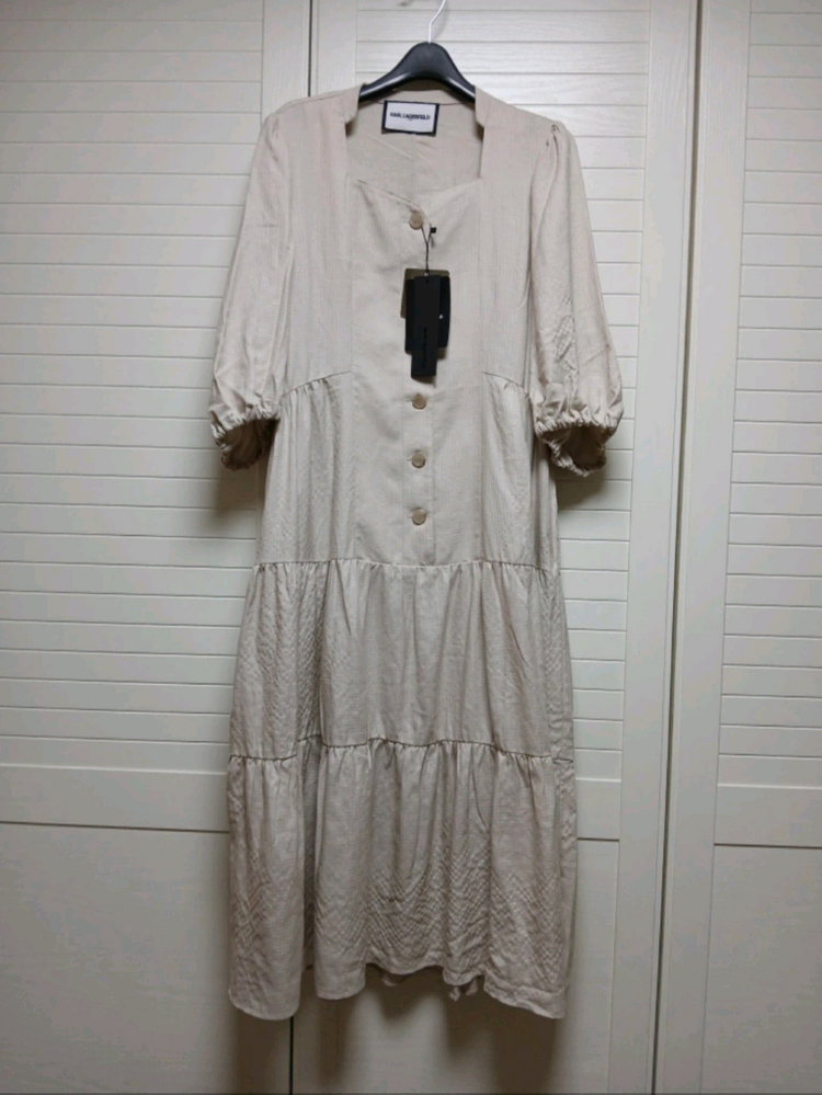 🎯 택배는 GS택배만 가능합니다. (일반택배는 4500원, 반값택배는 2200원 추가해 주세요.) 칼라거펠트(Karl Lagerfeld)의 린넨 블렌디드 원피스입니다. 깅엄 체크 패턴이 톤온톤으로 되어 있습니다. 스커트 부분 풍성하고, 촉감 시원합니다. 곡선 스퀘어넥이 유니크하고, 벌룬 퍼프 소매가 매력적입니다. 양쪽에 포켓 있습니다. 베이지 색상으로 여유로운 77사이즈입니다. (모델 착용샷의 색감이 실제와 더 비슷합니다.)