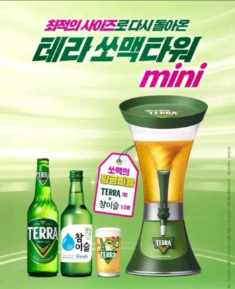 테라 쏘맥타워 맥주 디스펜서 미니 블루 소맥타워(새상품)