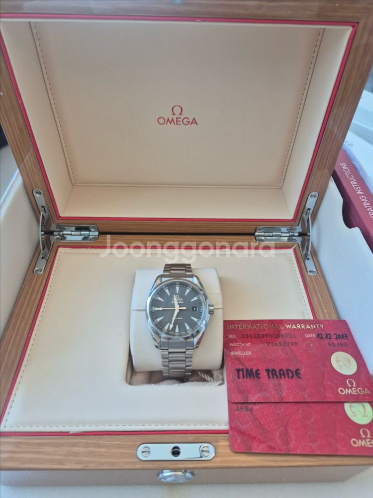 개인정보(거래정보)를 주고받는 행위는 사기에 노출될 수 있으므로 즉시 중고나라로 신고해 주세요오메가 씨마스터 아쿠아테라 남성 시계 풀박스입니다 2017년 12월에 구매한 제품입니다. 사진에 보이는 보증서, 시계 케이스, 설명서 여분 가죽 스트랩 전부 포함입니다 최근에 점검 받아두었고 상태 좋은편입니다 서울 직거래 가능합니다