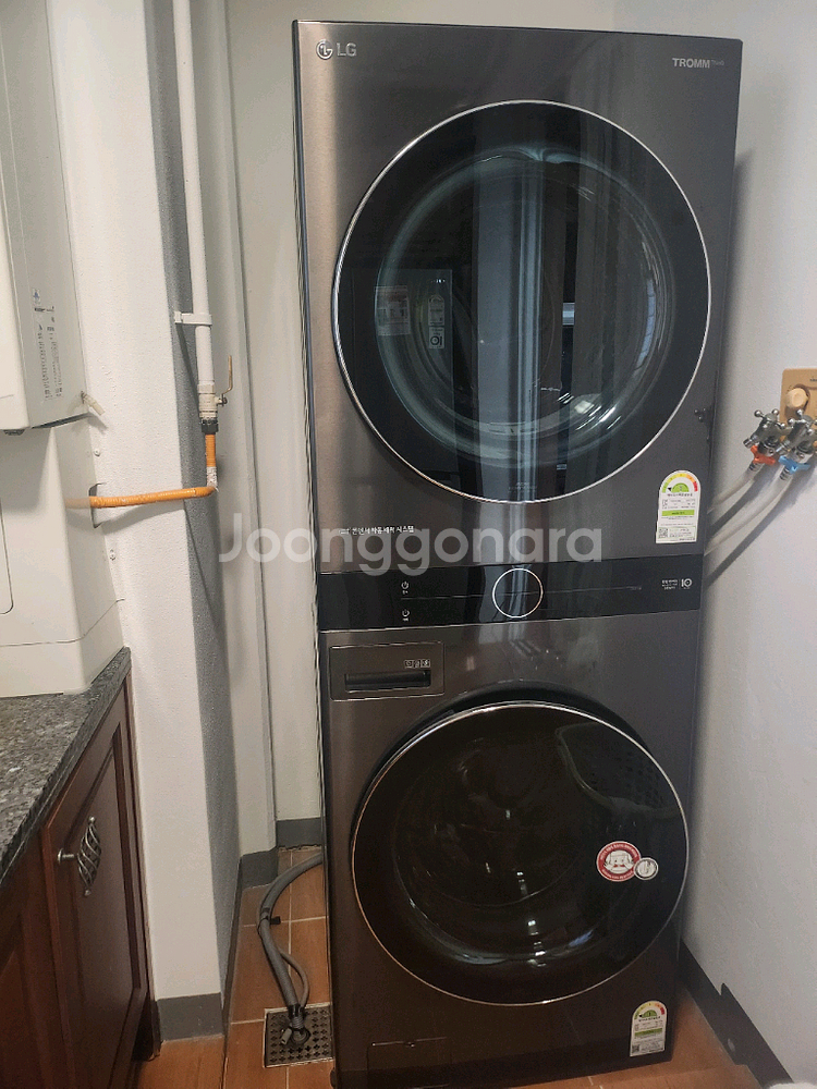 엘지 트롬 워시타워 세탁건조기입니다. 모델번호는 W16KT.AKOR 이며 색상은 메탈실버 색상으로 어느곳에나 잘 어울립니다. 세탁용량 21키로, 건조용량 16키로 입니다. 2020년 7월 신모델이며 롯데백화점에서 8월 29에 429만원에 구매했습니다. 3개월 주기로 세탁기 클리너로 세탁조 청소 꾸준히 하고 건조기 통살균도 2시간 이상 코스 준수하며 같이 진행했습니다. 사진에서 보듯 외관은 물론 내부도 아주 깨끗하고 반들반들 합니다. 세탁조 고무바킹도 곰팡이 하나 없이 완전 깨끗합니다. 건조기 기능도 다양해서 아주 편리합니다. 스팀리프레쉬 기능이 있어 겨울옷(패딩등) 관리 음식냄새 배인것 등등 스타일러 없이도 충분해요~ 이불털기 기능도 있어서 베란다에서 위험하게 까치발 들고 이불 털 필요도 없어 아주 편합니다. 집 올수리 공사를 하게되어 짐을 이삿짐 보관으로 맡겨야해서 부피 큰 가전을 줄여야해서 내놓습니다. 직접 가져가셔야 하고 4월27일 이삿짐센타에서 1층으로 내려주기로 했어요~ 10년이상 사용하려고 애지중지 아끼며 관리했어요~ 갑자기 집을 고치게 되어 내놓게 된거라 제품 상태는 아주 좋습니다.