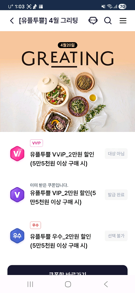 그리팅몰 유플 2만할인쿠폰 3장있어요