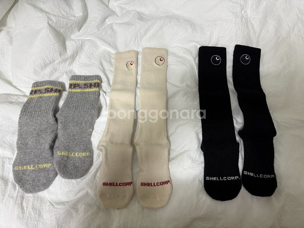 쉘코퍼레이션 등산 울니삭스예요 아이보리,블랙:롱 그레이:숏 레깅스입는분들 늦봄까지는 다리 보온력올리는데 너무좋고 울삭스라 향균 소취 쿠션감까지 다 잡아줍니다 다 두세번정도신고 잘 세탁해보관했고 사진에서 보이는 만큼의 사용감입니다 아이보리만 동그라미친 부분에 약간오염이생겼지만 크게개의치않으실분이 데려가심좋겠어요 유명한 스테디셀러삭스이고 평도 엄청 좋은제품이예요 세일해도 비산편인데 이기회에 저렴히 신어보실분이 데려가심 좋겠어요 등산시 정말 좋으실겁니다 3켤레 일괄데려가세요
