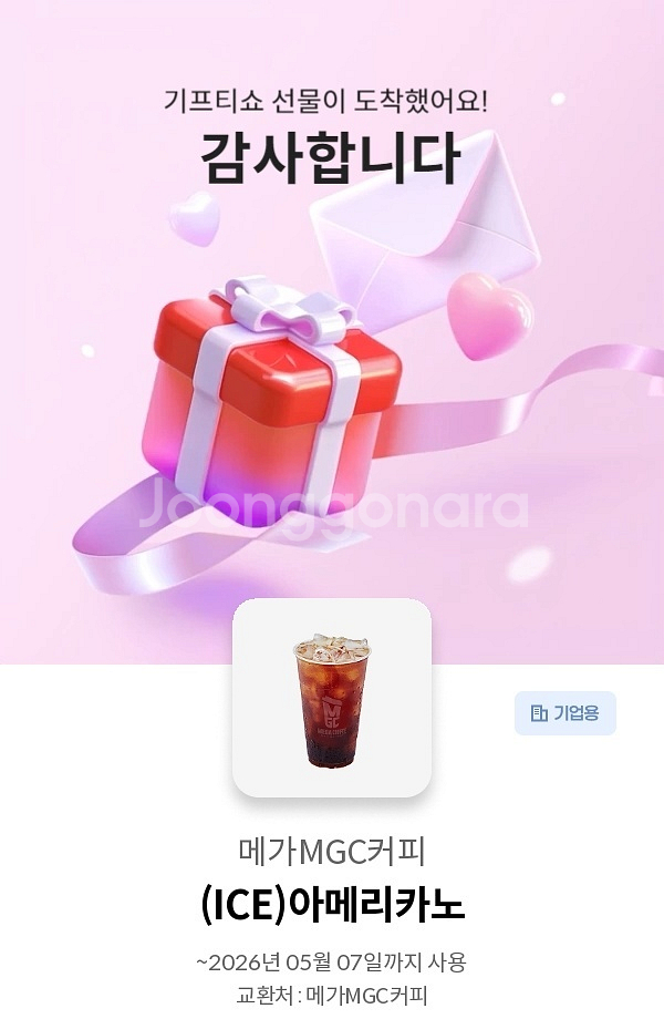 메가커피 아메리카노에요. 26년 5월 7일까지예요.