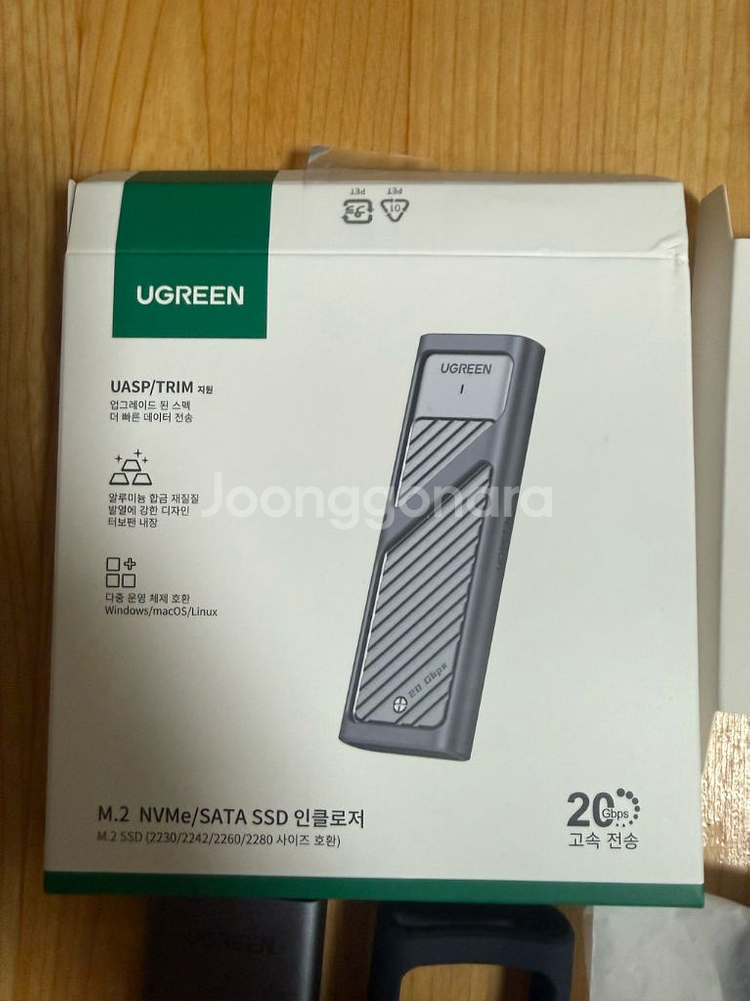 UGREEN M.2 NVMe/SATA SSD 외장 케이스 20Gbps 제품이에요 업그레이드된 UASP/TRIM 지원으로 더 빠른 데이터 전송이 가능해요 알루미늄 합금 재질로 발열 해소에 뛰어나고, 다양한 운영체제에서 호환돼요 문서, 영상 작업 등 대용량 데이터 이동이 잦은 분들에게 추천드려요 포장만 뜯었고요. 동일한 제품을 사용중이어서 판매합니다.