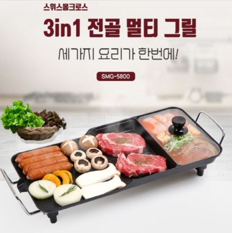 세가지 요리가 한번에~~ 시중가격198000원 모델명 SMG-5800 전골팬/그릴팬/프라이팬/3in1멀티그릴 기름배출구/강화유리뚜껑/높낮은조절기/온도5단조절기 참고 박스상태만(흡집/얼룩집/등)/본제품은 미개봉 상태최상~ 급착한가격대(박스상태가 좋지않아서 할인함) 직거래시 가능 관악구청룡동부분 택배별도(20000원지불)