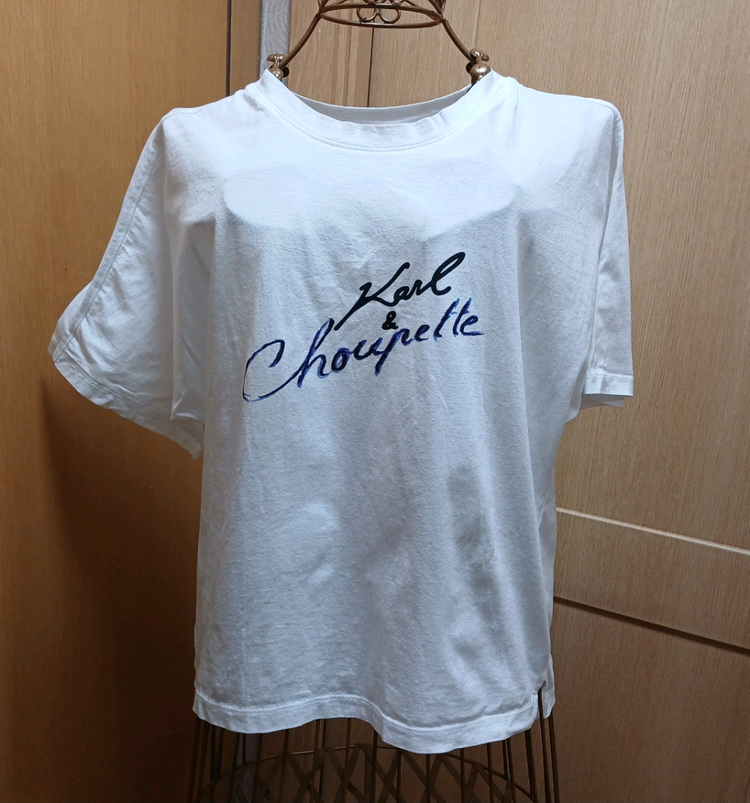 칼 라거펠트 파리의 정품 'Karl & Choupette' 그래픽 반팔 티셔츠입니다. 깔끔한 화이트 면 소재에 블루와 블랙 컬러의 감각적인 캘리그라피 로고가 들어가 있어 단독으로만 입어도 포인트가 되는 예쁜 옷이에요. 브랜드: KARL LAGERFELD (칼 라거펠트) 사이즈: 호칭 80 (구 44 사이즈) / 마른 55분들까지 추천 소재: 면 100% 청바지나 슬랙스 어디든 잘 어울리는 스타일입니다. 사이즈가 작게 나와 체구가 작으신 분이나 마른 체형인 분들이 입으시면 핏이 정말 예쁘게 떨어집니다. 청담역직거래 또는 배송비 별도 입니다.