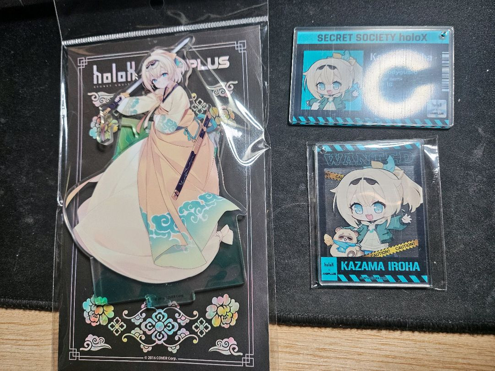 홀로라이브 홀록스 카자마 이로하 굿즈 일괄 판매합니다. 애니플러스 콜라보 카페에서 한정으로 판매했던 굿즈입니다 아크릴스탠드는 개봉및 전시품이고 보호필름 제거했는지 기억이 안나는데 앞면에 빛 비춰보면 지문 등 오염 살짝 있습니다(2번 사진 참고) 키링들은 보시다시피 하나는 개봉 하나는 비닐 미개봉인데 둘 다 보호필름 안뗐습니다 체인은 잃어버려서 플라스틱 키링만 갑니다 전부 빛 잘 안드는 전시장에서 전시해뒀던 것들이라 빛바램은 거의 없어요 당시 5만원이상 구매하면 랜덤으로 증정했던 LD일러스트 스티커도 같이 드립니다 반택 0.2 일반택배 0.4 #홀로라이브 #홀록스 #카자마이로하