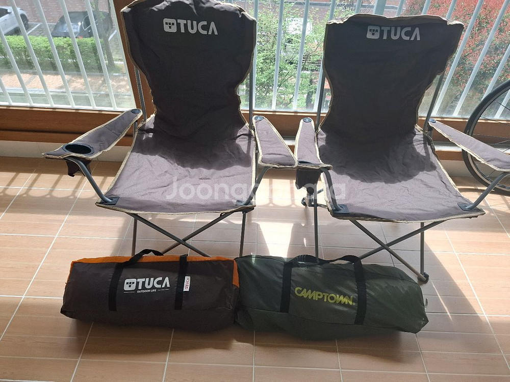 직거래만 합니다 투카 그늘막텐트 4인용 폴대로 치는 스타일,투카 캠핑 의자 2개와 캠프타운 헥사 타프 XL 300을 판매해요 의자는 컵홀더가 있어 편리하고 가방 있어요,.타프는 폴리에스테르 소재로 튼튼해요 사진에서 보이는 것처럼 구성품 모두 잘 챙겨두었어요 캠핑이나 야외 활동을 즐기시는 분들께 좋은 기회가 될 거예요