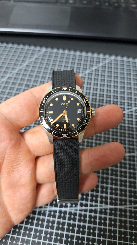 개인정보(거래정보)를 주고받는 행위는 사기에 노출될 수 있으므로 즉시 중고나라로 신고해 주세요오리스 식스티파이브 36미리 래커다이얼 브론즈베젤 24년 6월 국내백화점 26년 2월 정식오버홀(오버홀증서 보관시 1년간 보증) 제치러버 없고 대신 포스너브레이슬릿과 cts러버포함 생활기스있으나 찍힘없습니다 직거래 택배거래 다 가능합니다