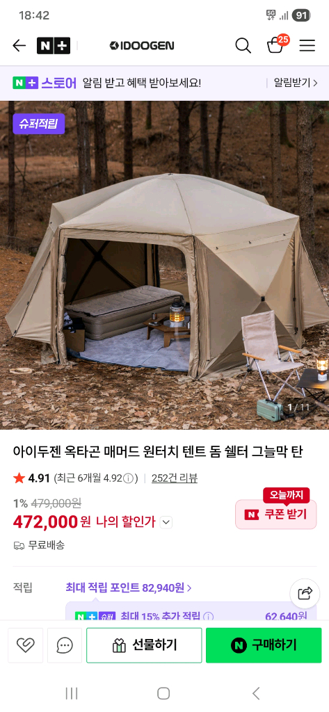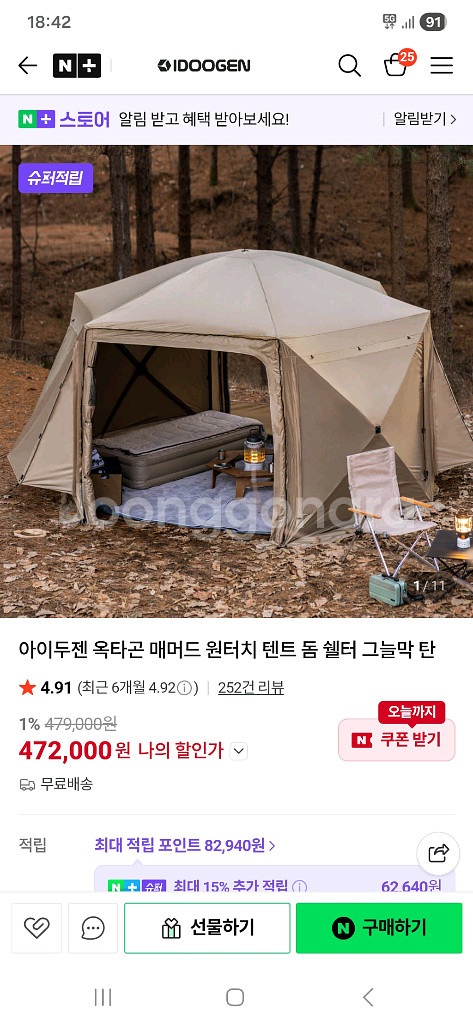 ![[미사용 새제품]아이두젠 옥타곤 매머드 원터치 텐트 돔 쉘터 그늘막 탄 세트 이미지](https://img2.joongna.com/media/original/2026/04/21/1776698482638SH8_v1oPy.jpg?impolicy=resize)