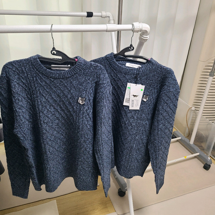 메종키츠네 폭스헤드 네이비 니트 새상품입니다. 남녀 공용으로 커플룩으로도 활용 가능한 제품입니다. 택 달린 완전 새상품이고 라지사이즈입니다 한장가격 여자66에서77 남자95에서100.문의주세요